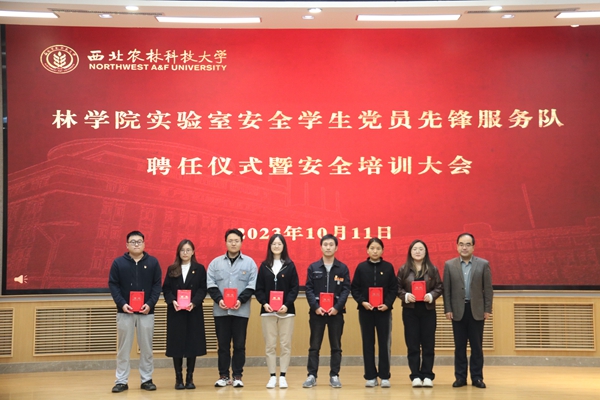 会上,副院长李谱华宣读《关于成立实验室安全督导组的通知》,院党委副书记张永斌宣读《关于聘任徐金颢等39名同学为林学院实验室安全学生党员先锋服务队队员的通知》。张蓉为督导组成员颁发聘书,李国龙、唐海波、胡巧娟为服务队成员颁发聘书。服务队队员代表王奎同学做表态发言。