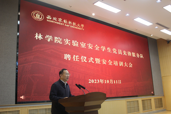 为充分发挥学生党员先锋模范作用,切实筑牢实验室安全防线,10月11日下午,林学院召开实验室安全督导组、学生党员先锋服务队聘任仪式暨安全培训大会。校党委副书记闫祖书出席会议并讲话,党委学工部部长李国龙、党委研工部副部长唐海波、实验室安全与条件保障处副处长张蓉、校团委副书记胡巧娟及300余名师生参加本次会议。会议由学院党委书记黄明学主持。